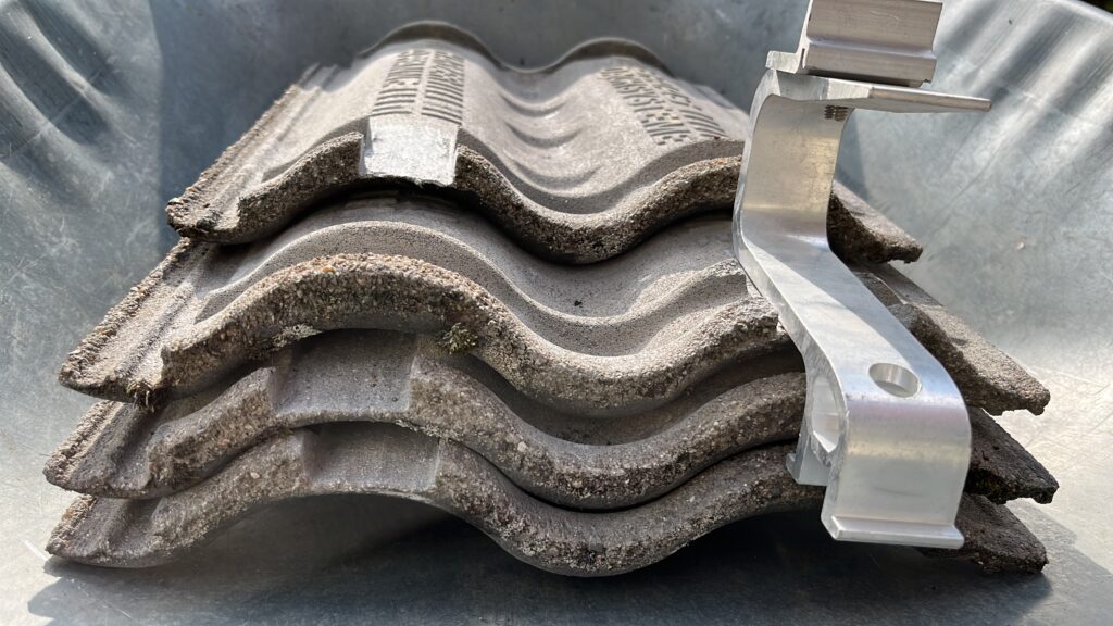 Das Beschleiffen der Betonziegel ware sehr aufwändig weil die K2 Aluhaken sehr dick sind und weil die K2 Dachhaken nur in 3 Positionen (also nicht stufenlos) in der Höge über dem Ziegel verstellt werden können. Würde ich vielleicht nicht mehr nehmen.